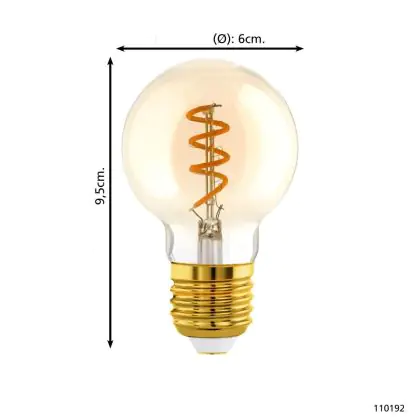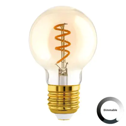Die Eglo LED Globe E27 Fadenlampe Messing 4W 145lm - 820 Extra Warmweiß | Dimmbar - Ersatz Für 15W ist eine effiziente E27 LED-Lampe mit Retrodesign und der perfekte Ersatz für Ihre konventionellen 15W Lampen mit E27. Zudem strahlt sie Licht in der Farbtemperatur 2000K - Extra Warmweiß aus und punktet durch eine lange Lebensdauer.