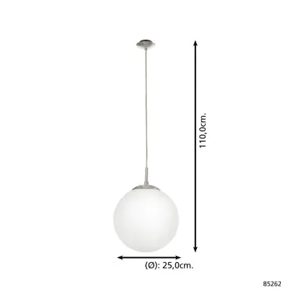 Die Eglo Pendelleuchte Rondo Stahl Satin-Nickel | Geeignet für E27 sorgt für eine angenehme Ausleuchtung und punktet durch modernes Design. Diese Leuchte ist speziell zur Montage an der Decke vorgesehen.