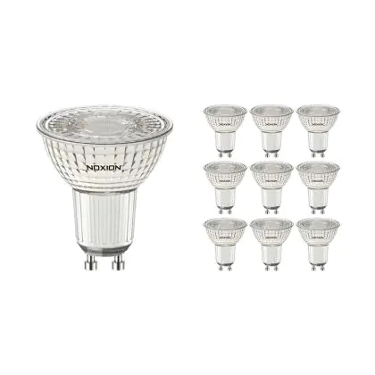 Die Mehrfachpackung 10x Noxion PerfectColor LED-Spot GU10 PAR16 4W 345lm 36D - 930 Warmweiß | Höchste Farbwiedergabe - Dimmbar - Ersatz für 50W ist eine effiziente GU10 LED-Lampe und der perfekte Ersatz für Ihre konventionelle Halogenlampe mit 50W und einem GU10-Sockel, bei welchem die zwei Stifte einen Abstand von 10 mm zueinander haben. Zudem strahlt das Produkt Licht in der Farbtemperatur aus und punktet durch eine lange Lebensdauer.