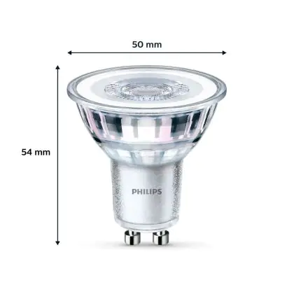 Die Lumeneffizienz des GU10 LED-Strahlers von Philips liegt bei lm/W. Herkömmliche GU10-Strahler hingegen besitzen ein Lumen zu Watt-Verhältnis von 10-15 lm/W. Somit sparen Sie allerhand Energiekosten. Hinzu kommt die lange Lebensdauer des GU10 LED-Strahlers von 15000. Somit spendet er deutlich länger Licht als ein herkömmlicher Halogenstrahler, der mit nur rund 3000 Stunden daherkommt. Das spart Ihnen zusätzlich Austausch- und Wartungskosten.
