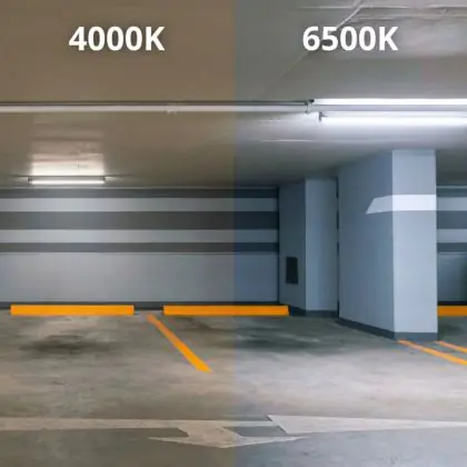 Die LED-Feuchtraumleuchte kommt mit der Farbtemperatur 4000K - Kaltweiß daher. Als Faustregel gilt: Je niedriger der Kelvinwert, desto gemütlicher wirkt das Licht.