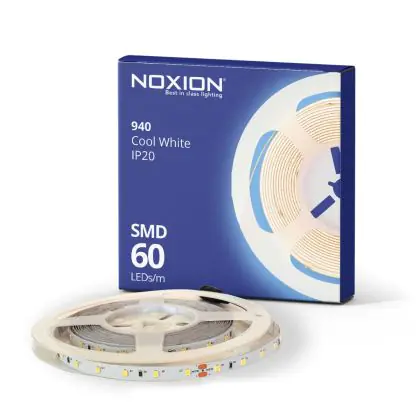 Hier finden Sie alle Vorteile von Noxion LED-Streifen Naga 5 Meter IP20 SMD2835/60 24V 4.8W/m 940 /8mm/100mm + DC Kabel auf einen Blick: