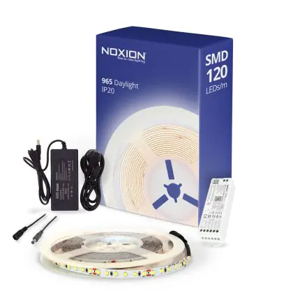 Beschreibung Noxion LED-Streifen Naga 5 Meter Komplettset - Smart Wifi - 24V - 120LEDs/m - 9.6W/m - 965 Tageslichtweiß | 8mm - IP20 - Höchste Farbwiedergabe - SMD2835
