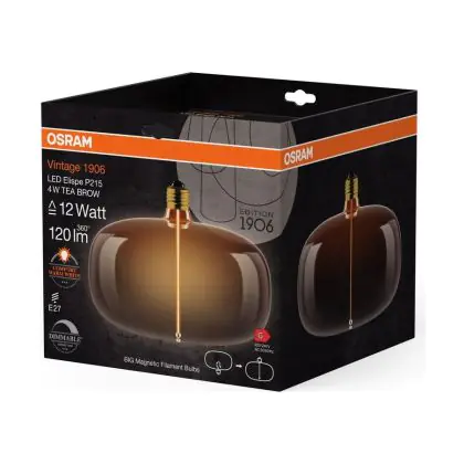 Die Osram Vintage 1906 LED E27 Special Fadenlampe Smoke 4W 120lm - 818 Extra Warmweiß | Dimmbar - Ersatz Für 15W ist eine effiziente E27 LED-Lampe mit Retrodesign und der perfekte Ersatz für Ihre konventionellen 15W Lampen mit E27. Zudem strahlt sie Licht in der Farbtemperatur 1800K - Extra Warmweiß aus und punktet durch eine lange Lebensdauer.