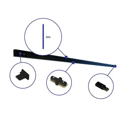 Beschreibung Rail Set 1-Phasen 3 Meter Schwarz | incl. Abschlusskappe, Stromanschluss und L-Verbinder